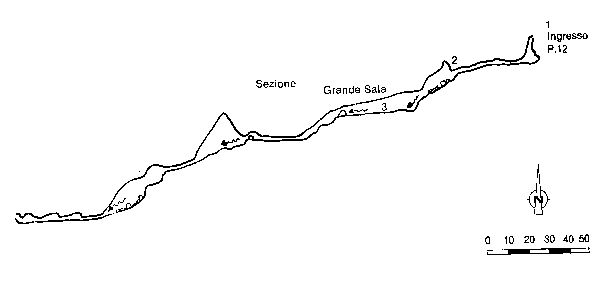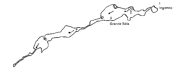 Nota anche come grotta del cane o semplicemente "quattrocento" (è il numero col quale è ordinata al catasto). Si presta ad escursioni poco impegnative, adatte a chi debba sperimentare la grotta per la prima volta. L'unica difficoltà è il pozzo iniziale (12m) che occorre scendere e risalire con la corda (non fidarsi della vecchia scala). ![]() Da Finale Ligure Marina proseguire sull'Aurelia sino a Finalpia, dove si abbandona per raggiungere le case di Calvisio. Proseguire sino al bivio per Verzi (si attraversa il ponte) e quindi, poco prima di raggiungere il paese, girare a sinistra nella direzione indicata dal cartello per la Antica via Romana (Julia Augusta). Si segue la strada sterrata sino al Ponte delle Fate (antco ponte romano) e quindi, superate alcune case si parcheggia su uno spiazzo sabbioso. Si prosegue a piedi sino a superare altri due ponti romani e quindi a destra ci si inoltra nel bosco per alcune centinaia di metri. Si trova un piccolo sentiero sulla sinistra, spesso invaso dalla vegetazione, da qui si procede risalendo il torrente sino ad incrociare le tubazioni che escono dalla grotta, che un tempo faceva parte del locale acquedotto. ![]() Attrezzatura necessaria :