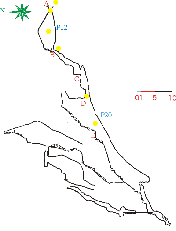 | A causa delle difficoltà in risalita (strettoia) questa è una grotta adatta ad un gruppo piuttosto ristretto (più di quattro persone comportano attese per il rientro piuttosto lunghe e noiose), per lo stesso motivo mettete in conto una permanenza di almeno 2 ore. | ||||||||||||||||||||||||||