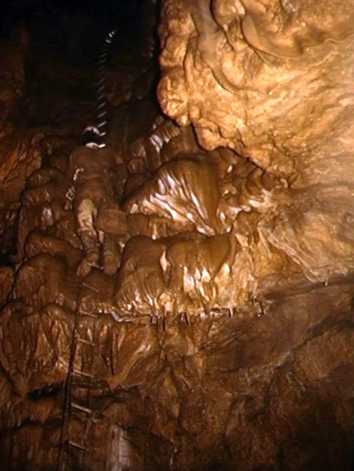 Una volta giunti sul fondo, l'esplorazione diventa rapida ed agevole, la grotta è sempre ben concrezionata ma è veramente piena di fango. Contiamo di aggiornare questa pagina dopo una nuova discesa (magari questo stesso inverno). |